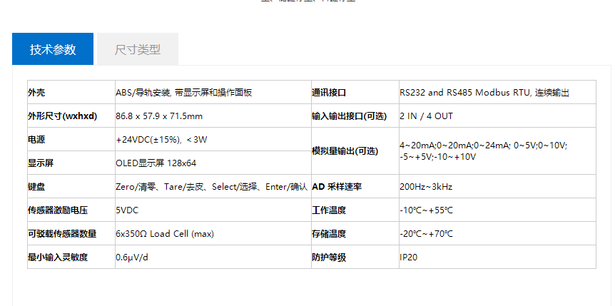 Venus重量變送器技術參數圖:Cod廣州南創電子科技有限公司