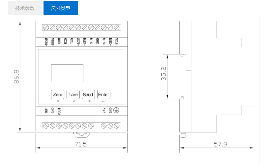 Venus重量變送器尺寸圖:Cod廣州南創電子科技有限公司