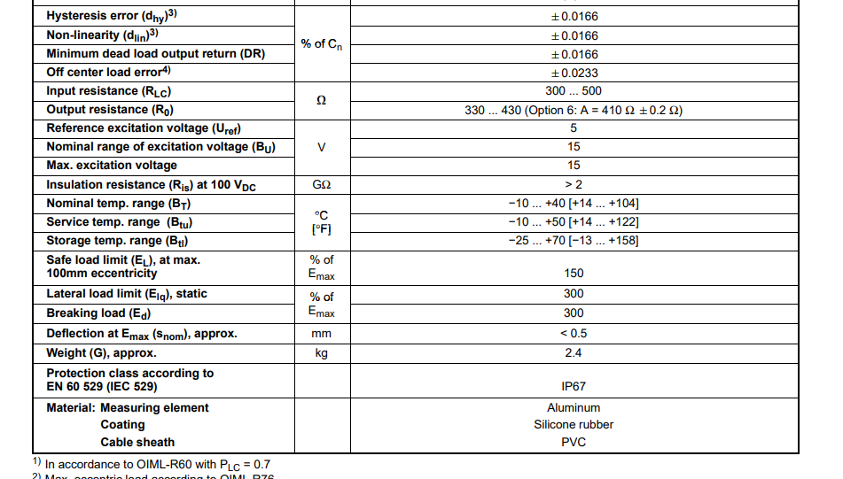 FLZ廣州南創(chuàng)電子科技有限公司極限過(guò)載:在不會(huì)對(duì)HBM稱(chēng)重傳感器PW12CC3/750kg造成機(jī)械破壞前提下所允許添加的最大重量。以額定量程的比例形式表示。