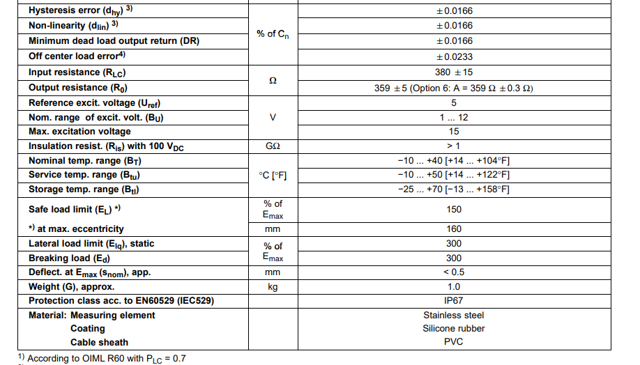 ulw廣州南創電子科技有限公司德國HBM稱重傳感器1-PW15AC3/100kg-1產品技術參數:ulw廣州南創電子科技有限公司