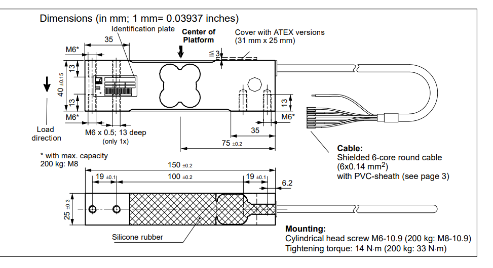 ulw廣州南創電子科技有限公司 ulw廣州南創電子科技有限公司德國HBM稱重傳感器PW15AC3 150kg尺寸圖:ulw廣州南創電子科技有限公司