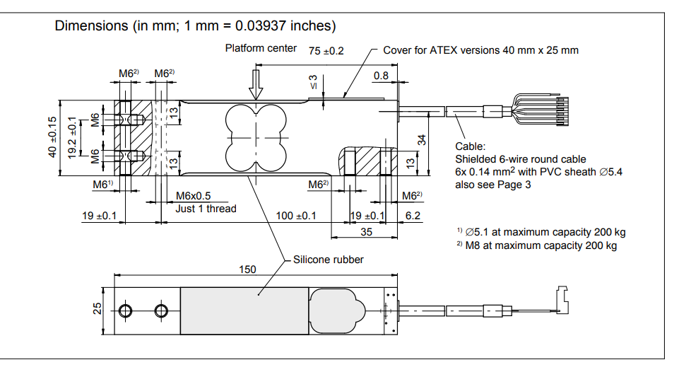 0Zs廣州南創電子科技有限公司德國HBM稱重傳感器PW15BC3MR 150kg尺寸圖:0Zs廣州南創電子科技有限公司