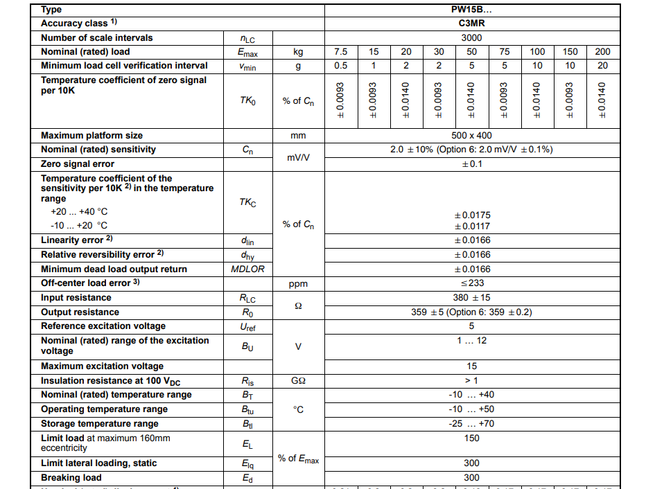 0Zs廣州南創電子科技有限公司德國HBM稱重傳感器1-PW15BC3MR/100kg-1產品技術參數:0Zs廣州南創電子科技有限公司