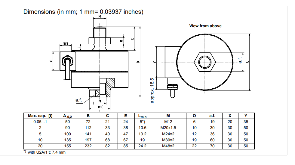6ze廣州南創電子科技有限公司德國HBM稱重傳感器U2AD1/5t產品尺寸圖:6ze廣州南創電子科技有限公司