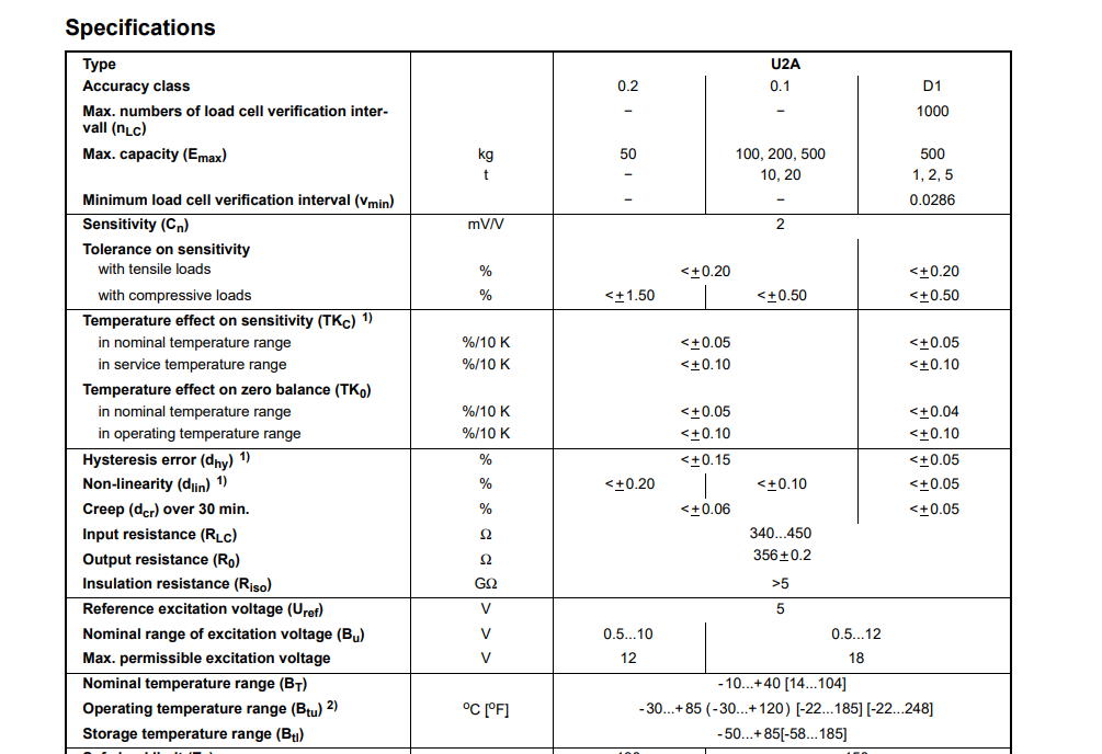 6ze廣州南創電子科技有限公司德國HBM稱重傳感器U2AD1/2t產品技術參數:6ze廣州南創電子科技有限公司