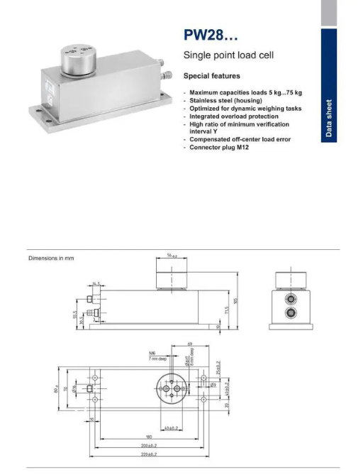 2S2廣州南創電子科技有限公司最小檢定分度值高達 20000,PW28 單點稱重傳感器完全滿足 C3 精度等級要求,可為您提供非常精確的測量結果。不銹鋼外殼固有的高剛度,使其非常適用于靜態和動態應用。IP67 防護等級可用于惡劣的工業環境。所有PW28稱重傳感器,無論其量程大小,均內置過載保護,可防止意外過載。