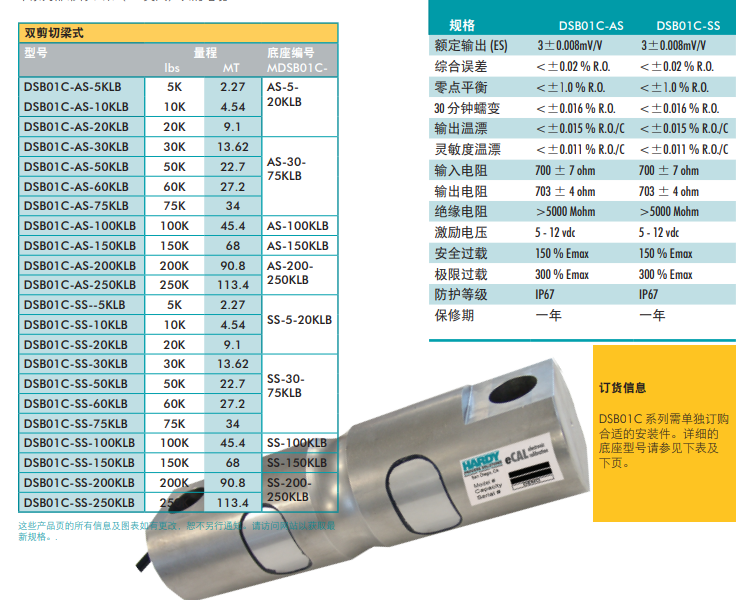美國hardy哈帝稱重傳感器相關(guān)型號量程:yr2廣州南創(chuàng)電子科技有限公司
