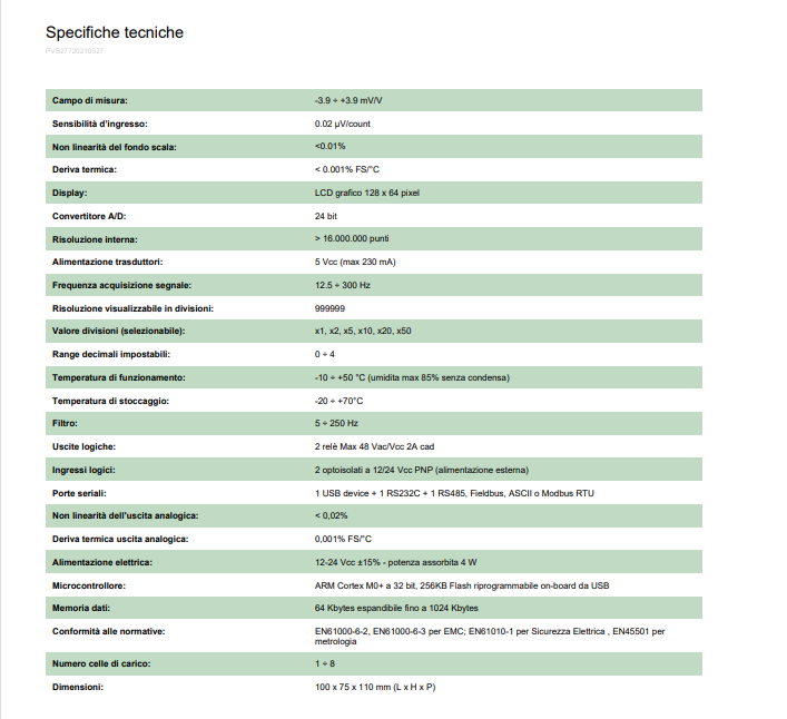 意大利帕瓦內重量變送器技術參數圖:1AG廣州南創電子科技有限公司