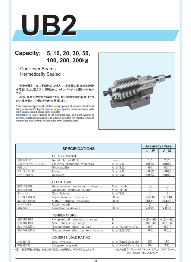 UB2-300kg稱重傳感器Yamato技術(shù)參數(shù):IsY廣州南創(chuàng)電子科技有限公司