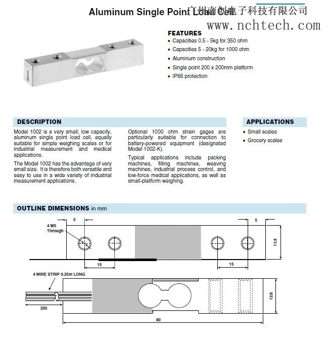 美國Tedea 1002-20kg稱重傳感器技術(shù)參數(shù):