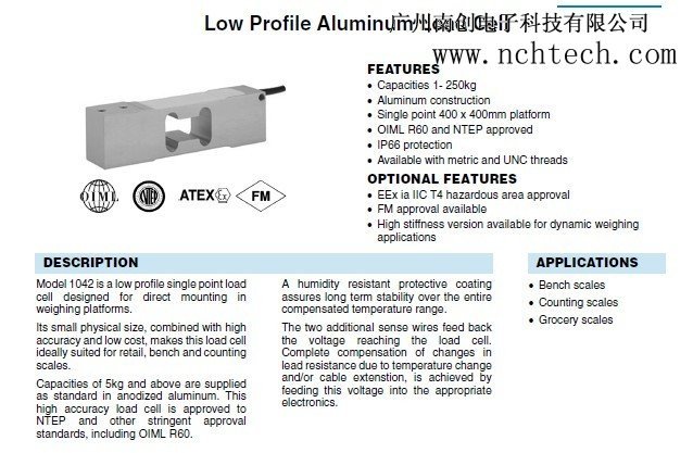 應用:Tedea 1042單點式稱重傳感器應用在平臺秤,工作臺秤,計數秤,食品秤。kRB廣州南創電子科技有限公司