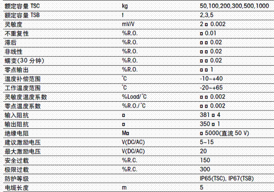 托利多0745A-2.2稱重傳感器技術(shù)指標(biāo):