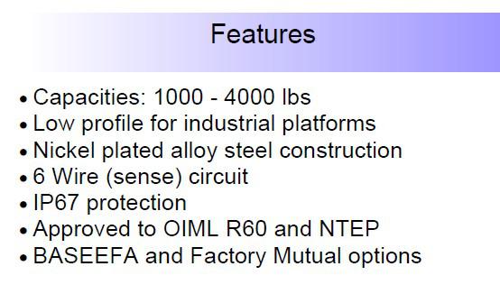 最終超載Ultimate Overload tedea 3410-4000lbs傳感器:300 % of Rated Capacity