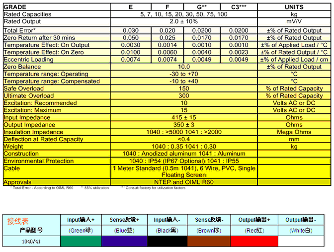 美國特迪亞tedea 1041稱重傳感器產品參數:aYo廣州南創電子科技有限公司