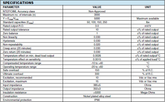美國世銓Celtron MBB系列稱重傳感器所有量程如下: fNj廣州南創電子科技有限公司