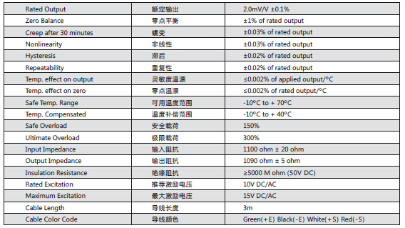 wjD廣州南創電子科技有限公司美國Transcell稱重傳感器SBST-500KG產品參數:wjD廣州南創電子科技有限公司