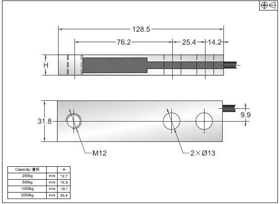 wjD廣州南創電子科技有限公司美國Transcell稱重傳感器SBST-500KG產品尺寸:wjD廣州南創電子科技有限公司
