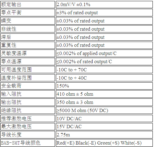 美國傳力Transcell BAB系列稱重傳感器所有量程如下: 7D4廣州南創電子科技有限公司