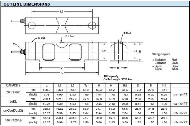 美國Celtron CLB-100klb稱重傳感器系列稱重傳感器所有量程如下:KQD廣州南創電子科技有限公司