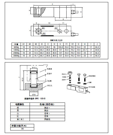 SBC-500 緊密型剪切梁傳感器,容量0.5T,6M電纜