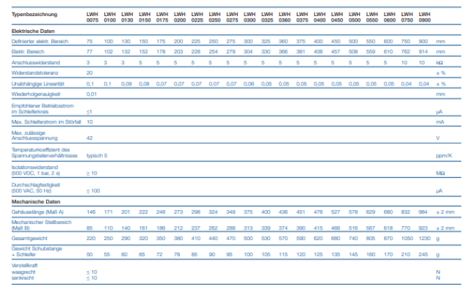 德國NOVOTECHNIK位移傳感器LWH-0050產品技術參數: