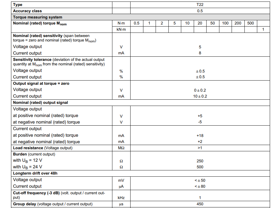 德國HBM扭矩傳感器T22/200NM產品技術參數:cRU廣州南創電子科技有限公司