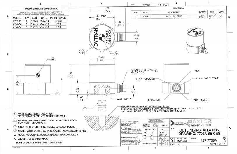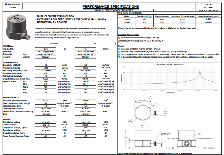 美國Dytran7705A1加速度傳感器規格圖: