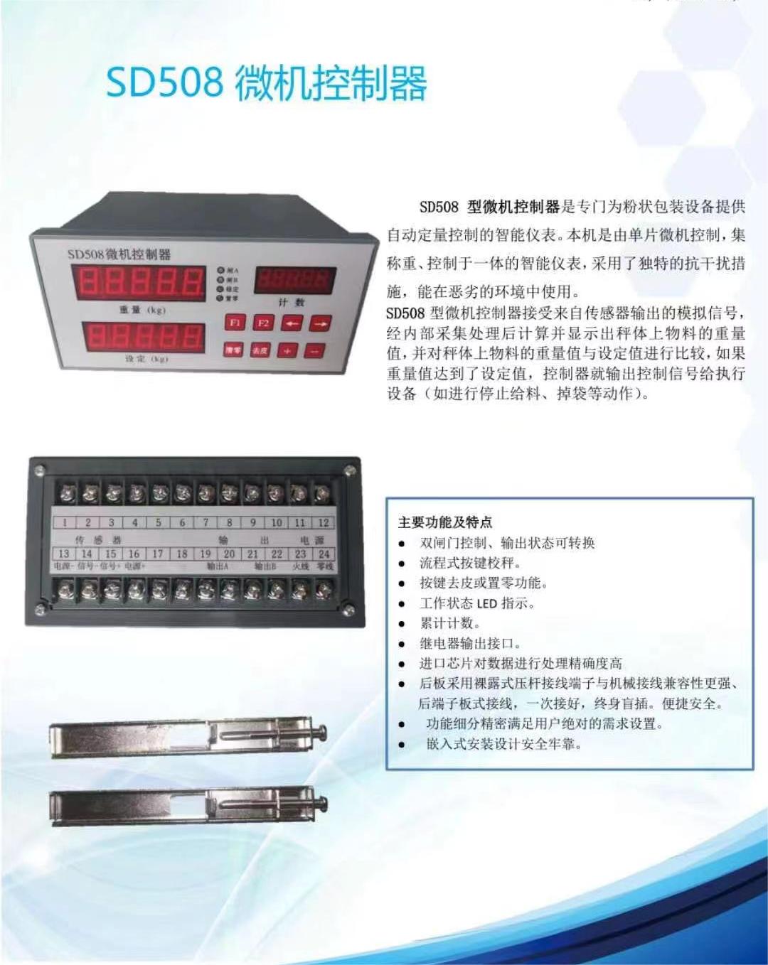 SD508型微機控制器是專門為粉狀包裝設備提供自動定量控制的智能儀表。本機是由單片微機控制,集稱重、控制于一體的智能儀表,采用了獨特的抗干擾措施,能在惡劣的環境中使用。TRf廣州南創電子科技有限公司