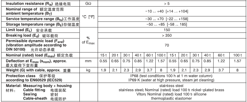 德國HBM C16AD1/200T稱重傳感器產品性能: