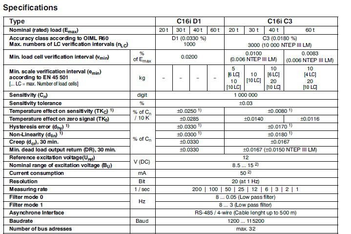 德國HBM C16iC3稱重傳感器技術(shù)指標(biāo):