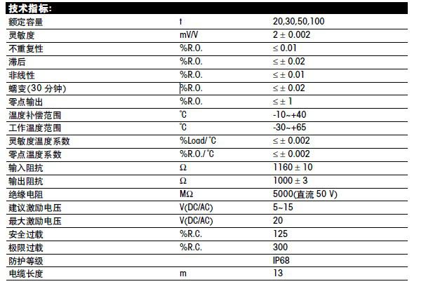 梅特勒托利多稱重傳感器GD-250技術指標:XUT廣州南創電子科技有限公司