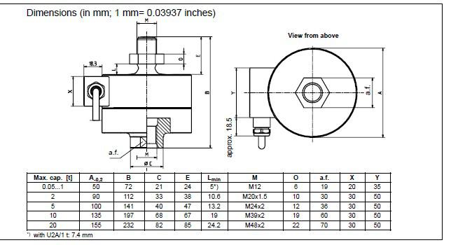 HBM稱重傳感器U2A/10T選型圖: