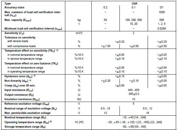 德國HBM U2A/10T稱重傳感器技術(shù)指標(biāo):