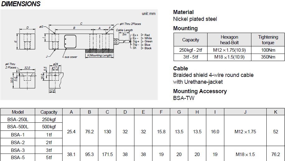 韓國CAS BSA-250L稱重傳感器其它型號: