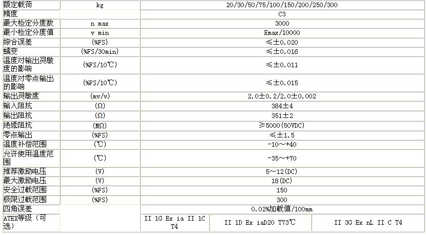 H6E-C3-300KG稱重傳感器技術(shù)參數(shù):