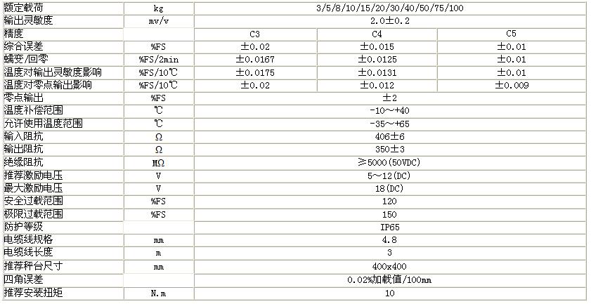 L6N-C3-30kg-3B6稱重傳感器綜合精度:0.1 % FS , 0.25 % FS , 0.5 % FS , 1.0 % FS