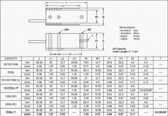美國世銓CeltronMBB-25kg稱重傳感器選型圖: