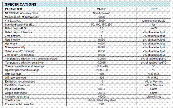 美國世銓Celtron MBB-25kg稱重傳感器主要特性: