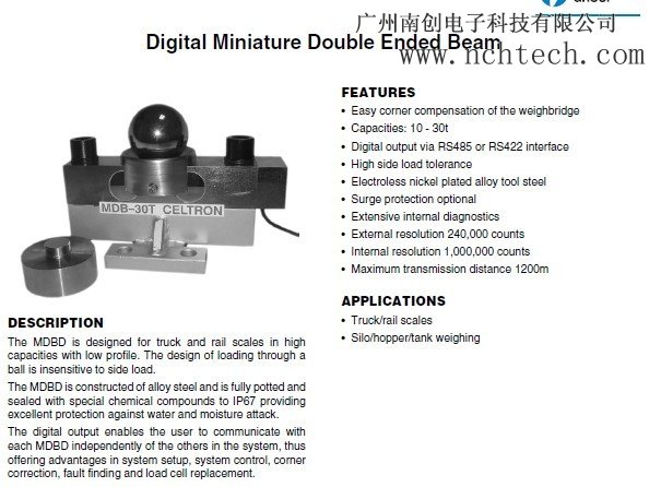 美國世銓Celtron MDB雙剪切梁式稱重傳感器專為卡車和鐵路的低配置高容量規模設計。在裝載過程中不易受負載影響。K8m廣州南創電子科技有限公司