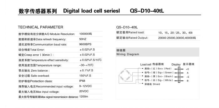 QS-D-40t稱(chēng)重傳感器技術(shù)圖:Technical drawings(注:QS-D10-40TL是數(shù)字傳感器也是QS-D-40t的另一種標(biāo)簽寫(xiě)法)tWM廣州南創(chuàng)電子科技有限公司
