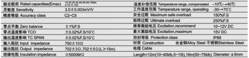 柯力QSB-A-50klb輸出溫度影響TC SPAN:±0.02%F.S/10℃