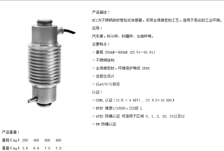 該類型RC1是完整的不銹鋼搖桿柱式稱重傳感器氣密密封,這是一個完美的科幻噸在惡劣的工業(yè)環(huán)境中使用。