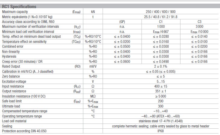 德國FLINTEC稱重傳感器RC1系列型號: