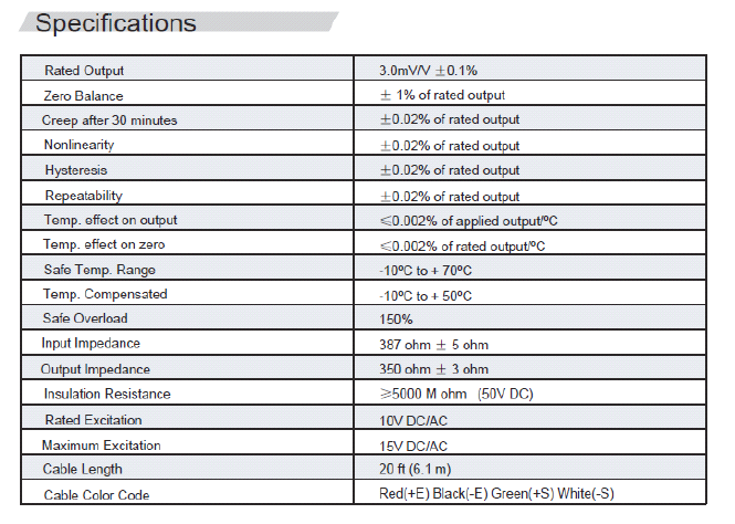 SBSB-1000kg傳感器的技術參數:oY3廣州南創電子科技有限公司