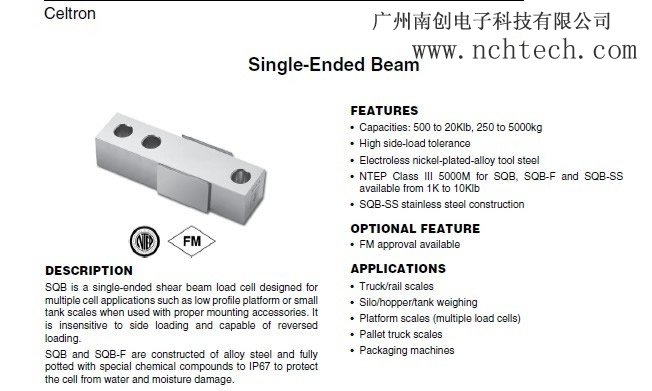 Celtron SQB單端梁稱重傳感器是高負荷量程0n7廣州南創電子科技有限公司