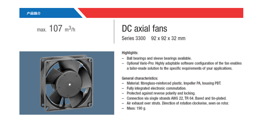 ebm風機3314 24DC 2.4W緊湊性設計能很好的節約安裝空間, 輪緣式支架使安裝非常簡便,特殊設計的含油軸承系統能夠實現很低的噪音,滾珠軸承設計能夠適應 端惡劣的工作環境。pRP廣州南創電子科技有限公司