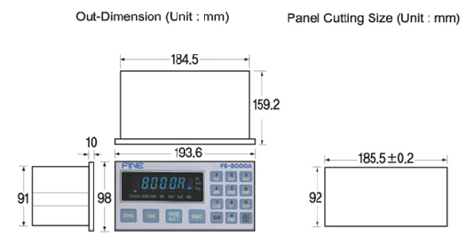 FS-8000A稱重顯示儀表尺寸:jEx廣州南創電子科技有限公司