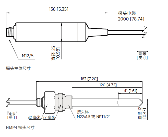 探頭連接裝置包括:M22x1.5 和 NPT1/2” 接頭AFM廣州南創電子科技有限公司