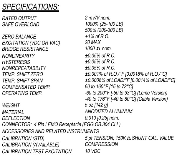 美國FUTEK LSB302稱重傳感器技術參數圖:
