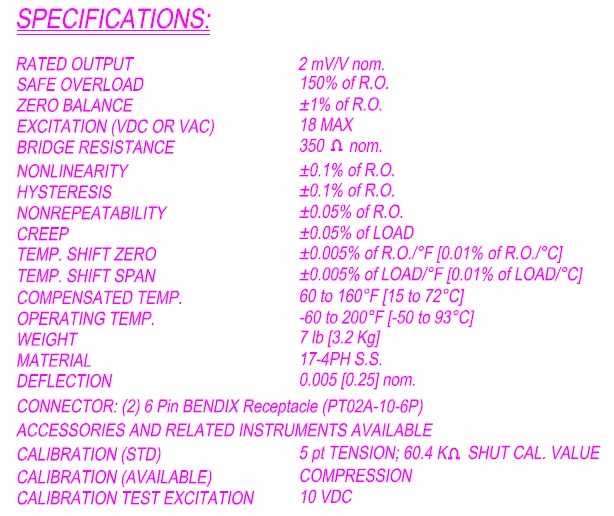 美國FUTEK LSB600稱重傳感器技術參數圖: